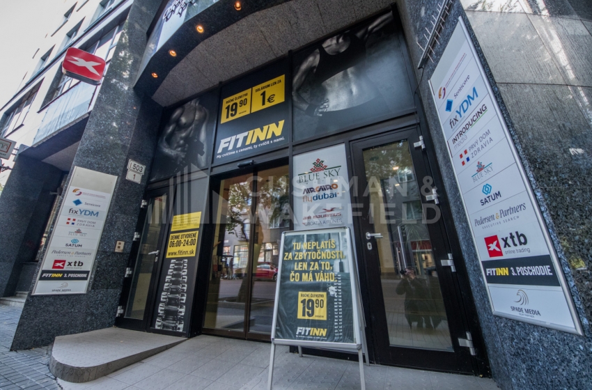 Spacious office space in the center of Bratislava in a 6-storey building with a fitness center. Air-conditioned offices with reception and unlimited access.