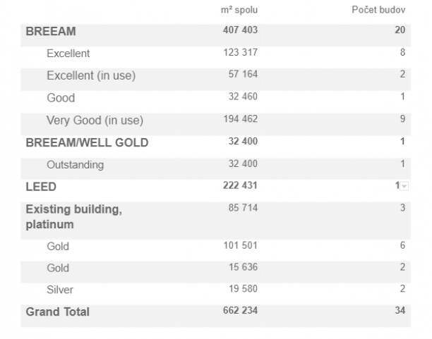 Zoznam green certifikácií kancelárskych budov v Bratislave (2.kvartál 2021):